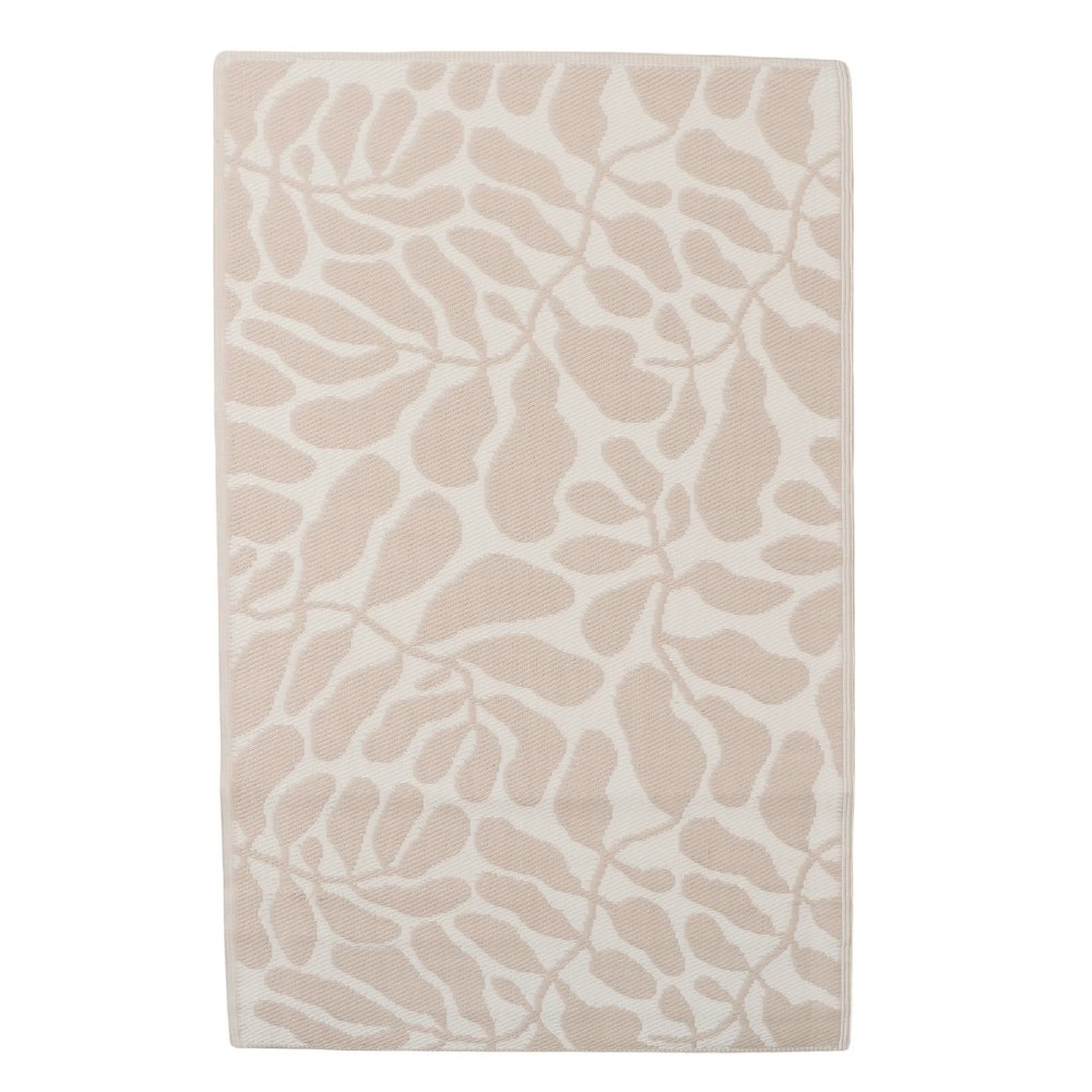 Tysko area rug features a contemporary beige and white flowing organic leaf motif design