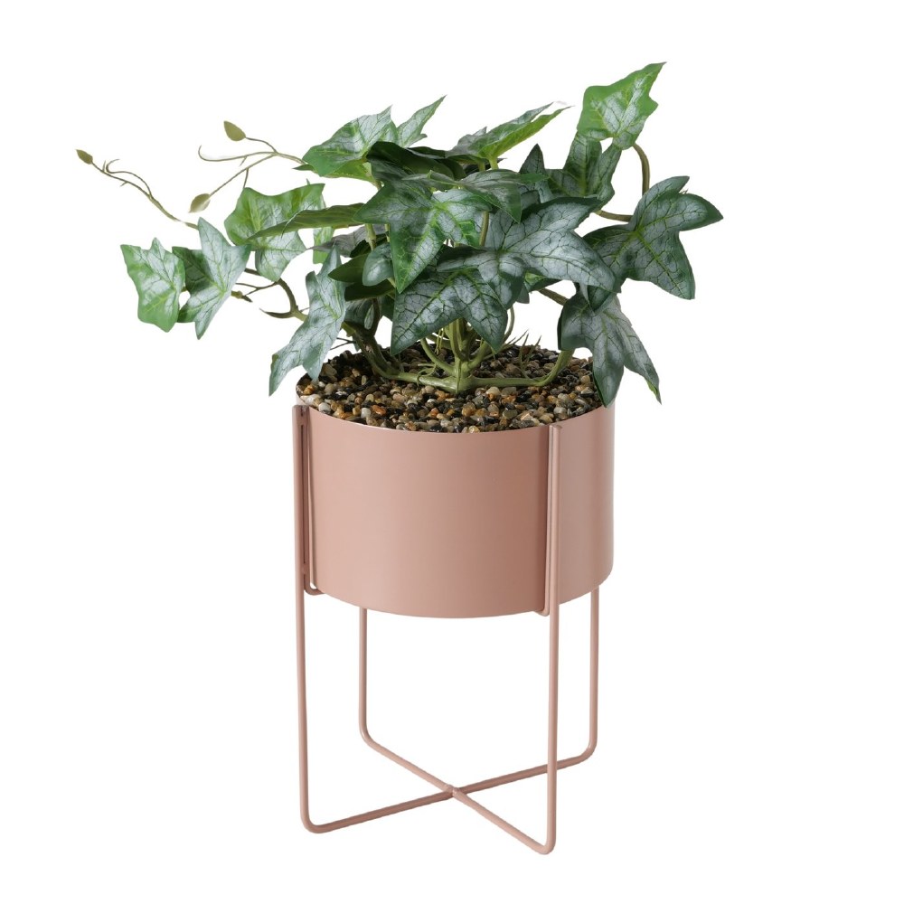 Sweet potato plant in cyclindrical pot with cross intercepting stand.