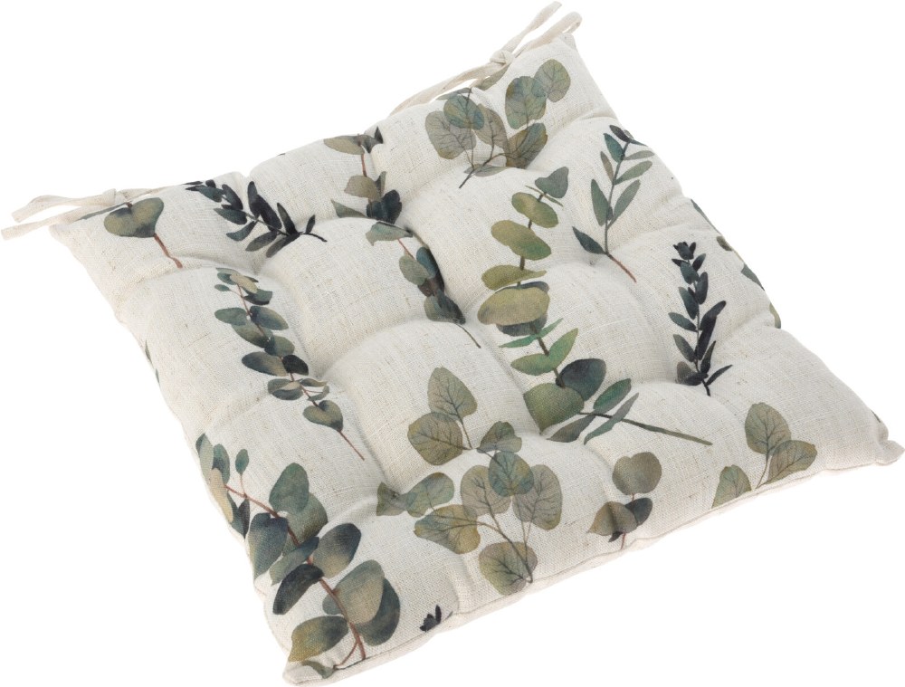 Cotton seatpad with a Eucalyptus leaf pattern.
