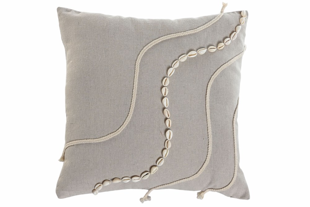 Beige cotton cushion with a shell and rope design.