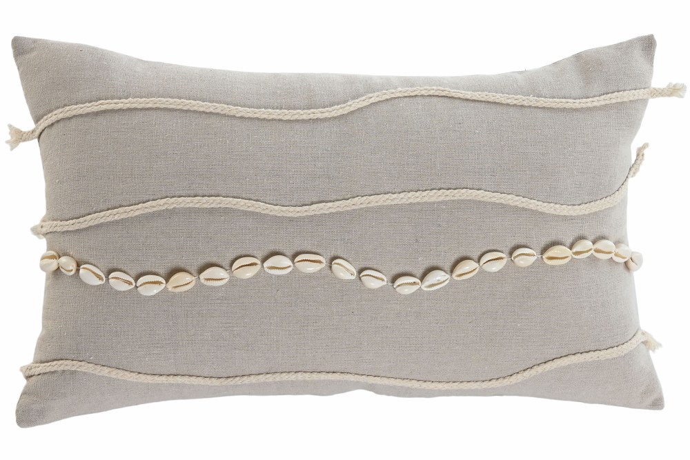 SHELL & ROPE LUMBAR CUSHION-BEIGE 20" x 12"