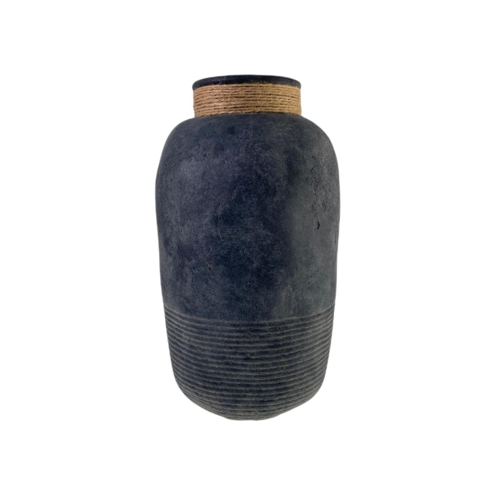 TALL BLACK VASE W/ROPE
