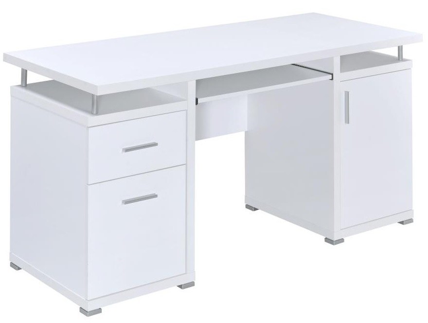 WHITE 2-DRAWER 1DOOR COMPUTER DESK