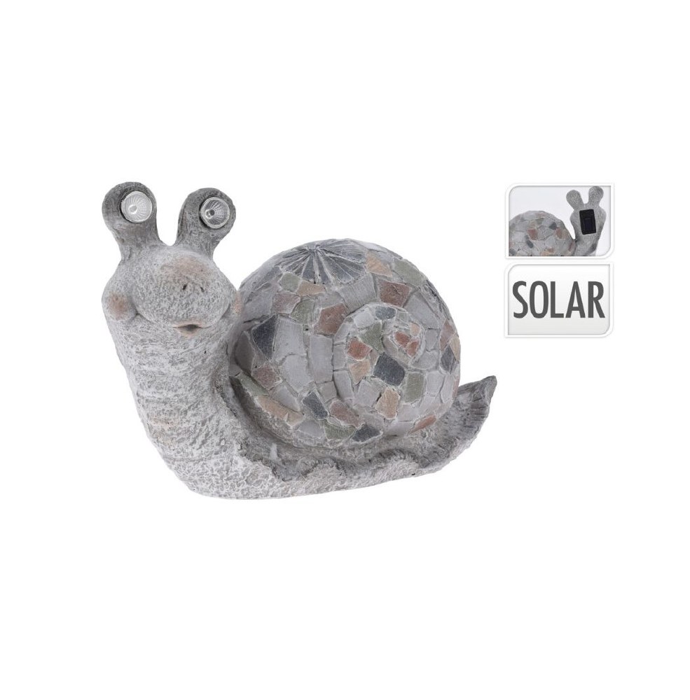 Snail figurine with solar eyes.