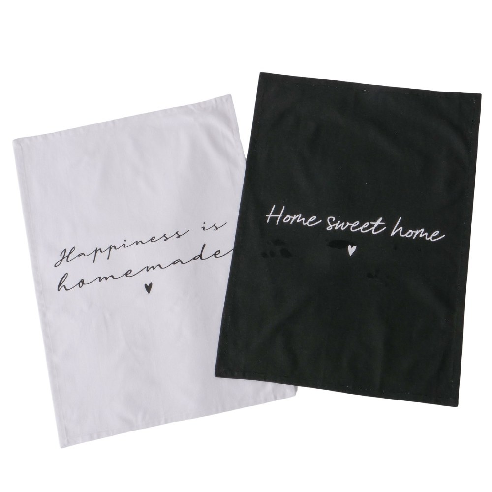 Homa Kitchen Towels in Black and White, available in 2 different designs.