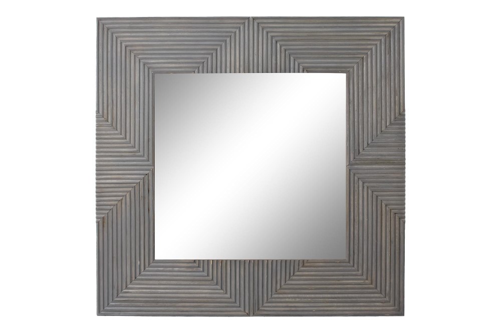 This mirror showcases an intricate linear design throughout its frame, enhanced by a light grey finish that adds both texture and elegance to any space.