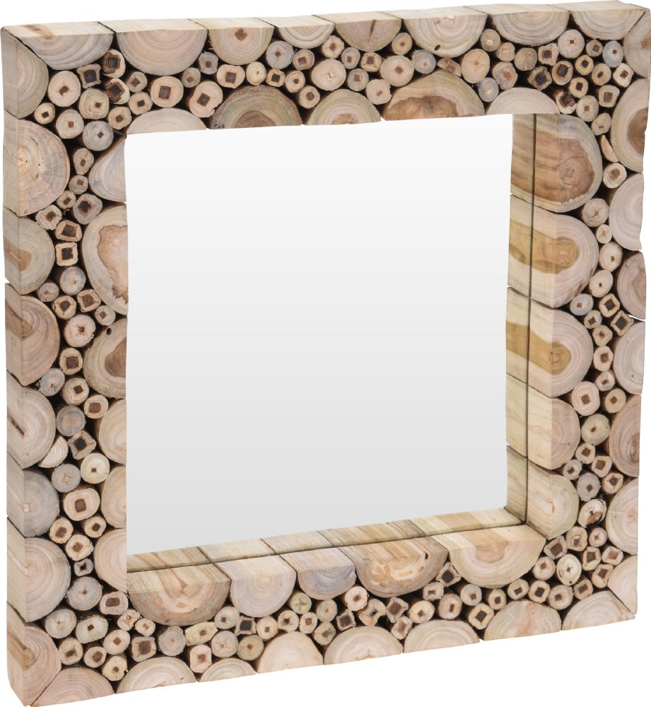 Natural teak square mirror with split log frame design