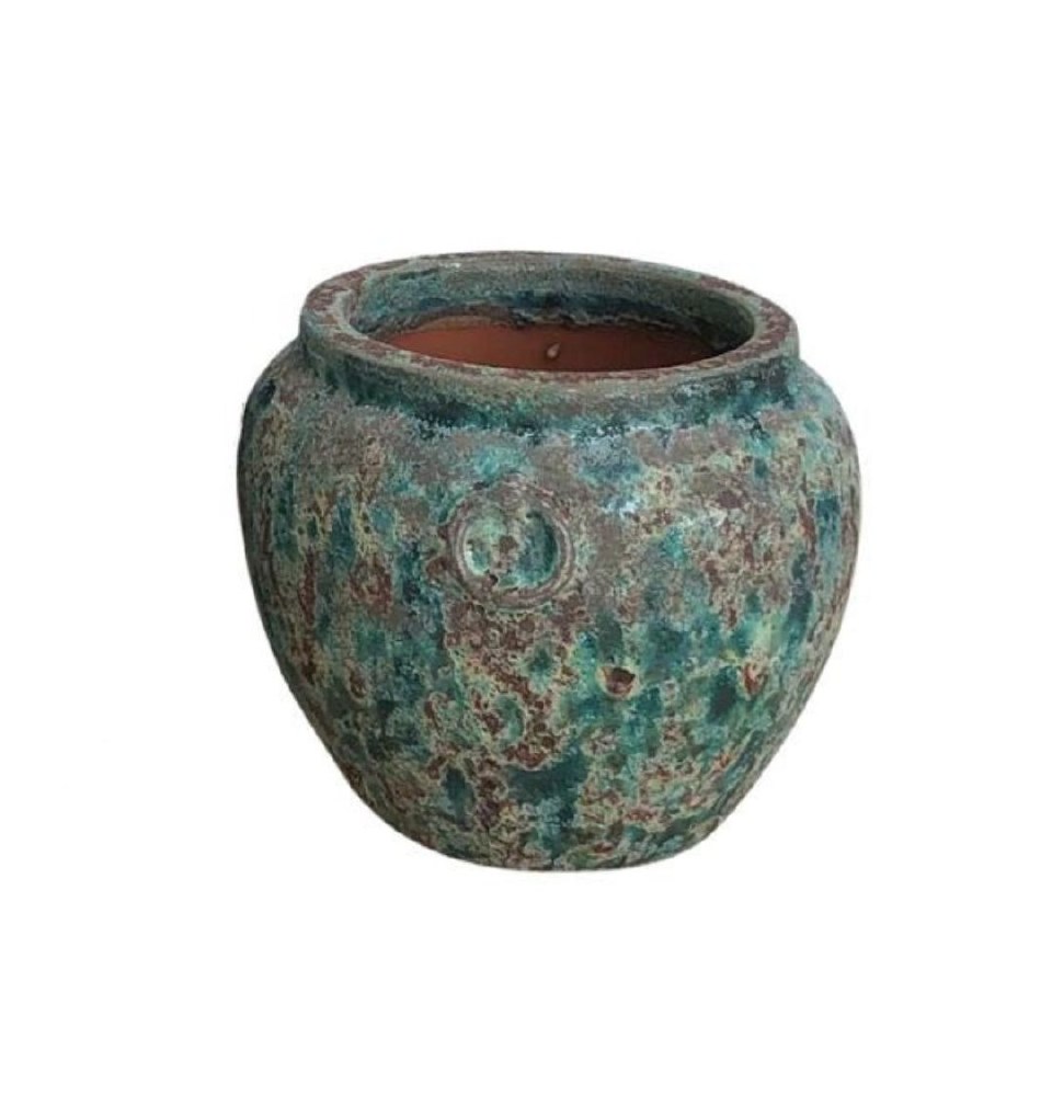 MOTTLED GREEN GLAZED TEXTURED PLANTER-SMALL