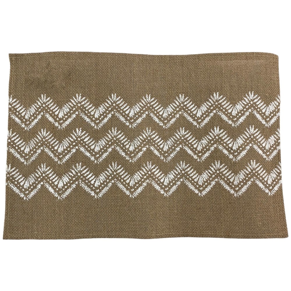 Burlap style placemat with a chevron white print.